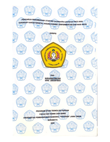 Inayah, Nurjihan (2024) Pengaruh Penambahan Starter Lactobacillus plantarum FNCC-0026 Terhadap Karakteristik Jagung Kuning Terfermentasi dan Nasi Aron. Undergraduate thesis, UPN "VETERAN" JAWA TIMUR.