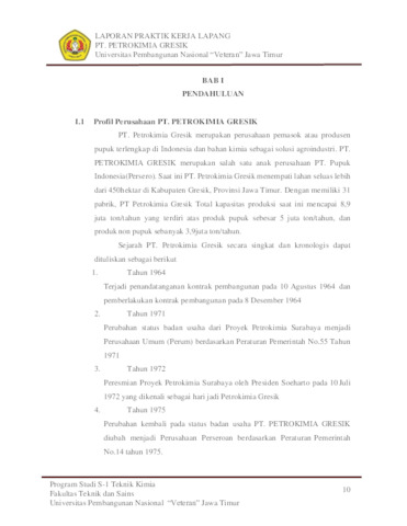 Meydyanti, Annisa Rachma (2024) LAPORAN PRAKTIK KERJA LAPANG ANALISIS PARAMETER ALAT PROSES PRODUKSI PUPUK PHOSGREEN PASCA TURN AROUND (TA) PADA PABRIK PUPUK FOSFAT I (PF I) PT. PETROKIMIA GRESIK. Project Report (Praktek Kerja Lapang dan Magang). Fakultas Teknik dan Sains UPN Veteran Jawa Timur. (Unpublished)