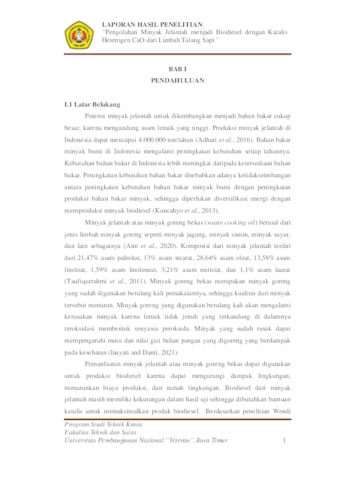 Sa'adah, Tantri Nailis (2024) Pengolahan Minyak Jelantah menjadi Biodiesel dengan Katalis Heterogen CaO dari Limbah Tulang Sapi. Undergraduate thesis, Universitas Pembangunan Nasional "Veteran" Jawa Timur.