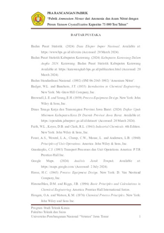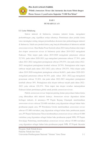 Sa'adah, Tantri Nailis (2024) Pabrik Ammonium Nitrate dari Ammonia dan Asam Nitrat dengan Proses Vacuum Crystallization Kapasitas 75.000 ton/tahun. Undergraduate thesis, Universitas Pembangunan Nasional "Veteran" Jawa Timur.