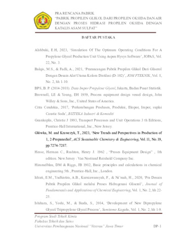Saifullah, Hanif Arya (2024) Pabrik Propilen Glikol dari Propilen Oksida dan Air dengan Proses Hidrasi Propilen Oksida dengan Katalis Asam Sulfat. Undergraduate thesis, UPN Veteran Jawa Timur.