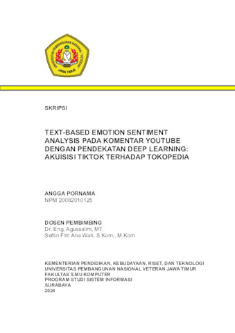 Pornama, Angga (2024) Text-Based Emotion Sentiment Analysis Pada Komentar Youtube Dengan Pendekatan Deep Learning: Akuisisi Tiktok Terhadap Tokopedia. Undergraduate thesis, UPN Veteran Jawa Timur.