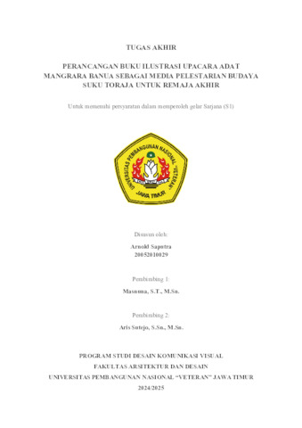 Saputra, Arnold (2024) Perancangan Buku Ilustrasi Upacara Adat Mangrara Banua Sebagai Media Pelestarian Budaya Suku Toraja Untuk Remaja Akhir. Undergraduate thesis, UPN Veteran Jawa Timur.