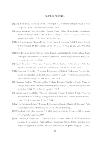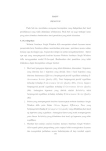 Surabaya Single Window Alfa is one of Surabaya's main websites for providing online licensing services anytime and anywhere. Over time, an evaluation is necessary to continuously improve the quality of services on the website. Based on reviews from social media and public complaint websites, issues regarding the usage of SSW Alfa have been identified, indicating the need for further evaluation. The purpose of this thesis research is to identify the factors influencing the service quality of the Surabaya Single Window Alfa website by applying the E-GovQual model. The variables used in this study include Reliability, Efficiency, Citizen Support, and E-GovQual Service Quality. In this research, a questionnaire was distributed to 400 respondents who met the criteria of having used the Surabaya Single Window Alfa website. The questions were designed according to E-GovQual criteria, and the data was processed using the PLS-SEM approach. The results of the study show that all proposed variables Efficiency, Trust, and Citizen Support have a positive and significant relationship with e-government service quality on the Surabaya Single Window Alfa website. Reliability variable has a positive but insignificant relationship with e-government service quality on the website.