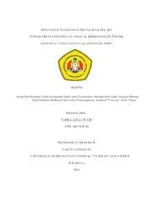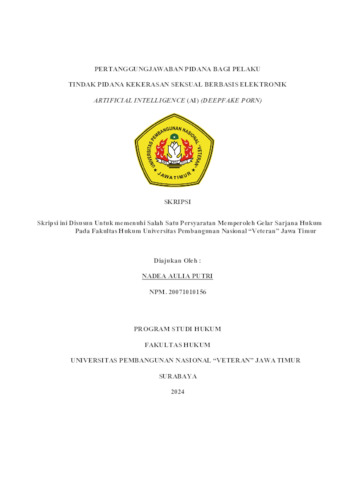 Putri, Nadea Aulia (2024) Putri, Nadea Aulia (2024) PERTANGGUNGJAWABAN PIDANA BAGI PELAKU TINDAK PIDANA KEKERASAN SEKSUAL BERBASIS ELEKTRONIK ARTIFICIAL INTELLIGENCE (AI (DEEPFAKE PORN), Undergraduate Thesis, UPN "Veteran" Jawa Timur. Undergraduate thesis, UPN "Veteran" Jawa Timur.