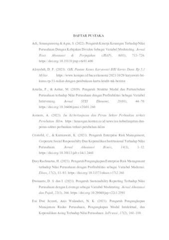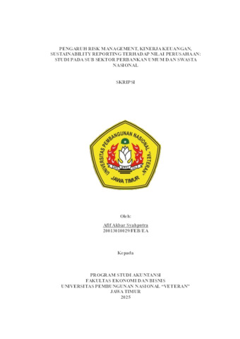 Syahputra, Afif (2025) PENGARUH RISK MANAGEMENT, KINERJA KEUANGAN, SUSTAINABILITY REPORTING TERHADAP NILAI PERUSAHAAN: STUDI PADA SUB SEKTOR PERBANKAN UMUM DAN SWASTA NASIONAL. Undergraduate thesis, UPN Veteran Jawa Timur.
