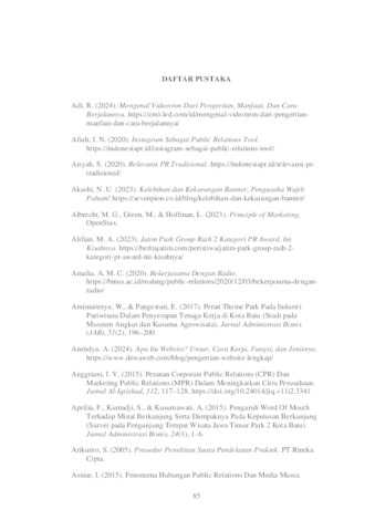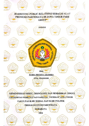Arandha, Maria Regista (2024) MARKETING PUBLIC RELATIONS SEBAGAI ALAT PROMOSI PARIWISATA DI JAWA TIMUR PARK GROUP. Undergraduate thesis, UPN Veteran Jawa Timur.