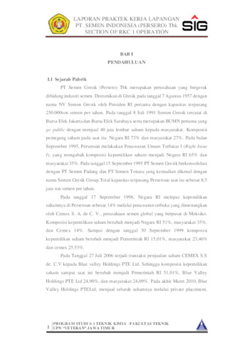 Resa, Damayanti (2022) LAPORAN PRAKTEK KERJA LAPANGAN PT. SEMEN INDONESIA (PERSERO) Tbk. UNIT TUBAN JAWA TIMUR. Project Report (Praktek Kerja Lapang dan Magang). -. (Unpublished)