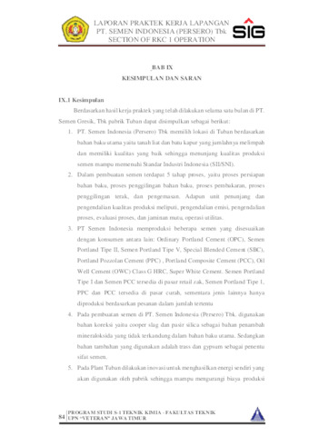 PERTIWI, MELDI RAMAHDANI INTAN (2022) LAPORAN PRAKTEK KERJA LAPANGAN PT. SEMEN INDONESIA (PERSERO) Tbk. UNIT TUBAN JAWA TIMUR. Project Report (Praktek Kerja Lapang dan Magang). UPN 'VETERAN' JATIM. (Unpublished)