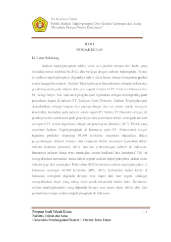 PERTIWI, MELDI RAMAHDANI INTAN (2025) PABRIK SODIUM TRIPOLYPHOSPATE DARI NATRIUM CARBONATE DAN ASAM PHOSPHATE DENGAN PROSES KOMBINASI. Undergraduate thesis, UPN "VETERAN" JATIM.