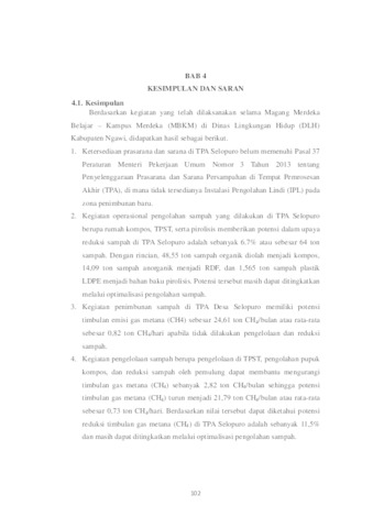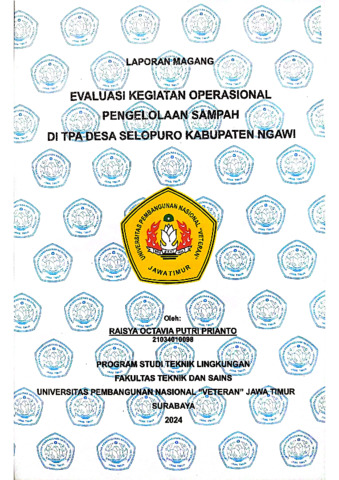 Prianto, Raisya O. P. (2024) Evaluasi Kegiatan Operasional Pengelolaan Sampah di TPA Desa Selopuro Kabupaten Ngawi. Project Report (Praktek Kerja Lapang dan Magang). Fakultas Teknik dan Sains, Surabaya. (Unpublished)