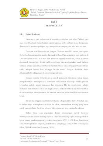 Debora, Ratu Mayoreta (2025) Pabrik Dextrose Monohydrate dari Tepung Tapioka dengan Proses Hidrolisis Asam. Undergraduate thesis, UPN Veteran Jatim.