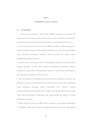 HUBUNGAN ORGANIZATIONAL EMPLOYEE RELATIONSHIP DAN ORGANIZATIONAL RESILIENCE RESTORATION TERHADAP INTERNAL CRISIS COMMUNICATION PADA PERUSAHAAN X TV DI SURABAYA