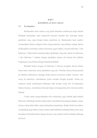 Penelitian ini bertujuan untuk memahami fenomena gegar budaya yang dialami oleh remaja perantau yang bekerja sebagai barista di Bangkalan. Hasil analisis menunjukkan bahwa sebagian besar perantau merasakan gegar budaya, kecuali beberapa yang memiliki latar belakang toleransi terhadap perbedaan, seperti Syafriandika Naufal dan Ilham. Informan lain, seperti Andy dan Irvan, menunjukkan respon adaptasi yang berbeda terhadap lingkungan budaya Madura; Andy masih berjuang dengan diskriminasi, sementara Irvan mengekspresikan kegelisahannya melalui reaksi fisik. Beberapa informan lainnya, seperti Michael dan Aji, mengatasi tantangan budaya dengan memberi ruang bagi diri sendiri. Hambatan dalam komunikasi juga dialami oleh informan lainnya, yang mengarah pada kesulitan adaptasi. Para perantau mengadopsi strategi adaptasi yang beragam, termasuk membangun hubungan dengan masyarakat setempat. Berdasarkan teori adaptasi budaya oleh Kalvero Oberg, informan melewati empat tahap adaptasi: honeymoon, hostility, recovery, dan adjustment, dengan kecepatan yang berbeda. Faktor etnosentrisme dan gaya hidup masyarakat Madura berperan signifikan dalam menciptakan gegar budaya, sementara bahasa bukan faktor utama. Penelitian ini menggarisbawahi kompleksitas interaksi antarbudaya di Madura akibat kurangnya pengungkapan diri oleh masyarakat lokal dan persepsi stereotip yang berkembang antar budaya. Kata Kunci : Adaptasi Remaja Perantau, Gegar Budaya, Jawa dan Madura.