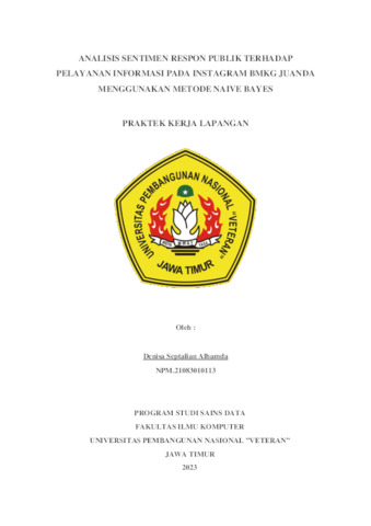Penelitian ini merupakan langkah sistematis dalam menganalisis sentimen publik terhadap pelayanan informasi yang disediakan oleh Badan Meteorologi, Klimatologi, dan Geofisika (BMKG) Juanda melalui platform Instagram. Dengan mengadopsi metode Naive Bayes, penelitian ini bertujuan untuk mengklasifikasikan respons publik menjadi kategori positif, negatif, atau netral. Data yang menjadi fokus penelitian diperoleh dari interaksi publik pada postingan Instagram BMKG Juanda selama periode tahun 2022 hingga 2023. Proses penelitian dimulai dengan pengumpulan data, yang mencakup ekstraksi respons publik terhadap informasi BMKG Juanda di media sosial. Penggunaan metode ini memungkinkan peneliti untuk memahami dengan lebih baik sikap dan persepsi masyarakat terhadap layanan informasi yang disediakan oleh BMKG Juanda. Pra pemrosesan data dilakukan untuk memastikan keakuratan dan konsistensi data yang digunakan dalam analisis sentimen. Metode Naive Bayes dipilih karena keunggulannya dalam mengklasifikasikan sentimen dengan akurasi yang tinggi. Model ini membantu memahami secara lebih rinci apakah respons publik cenderung positif, negatif, atau netral. Lebih dari sekadar mengidentifikasi sentimen, penelitian ini juga berusaha untuk merinci faktor-faktor yang mungkin mempengaruhi respons publik terhadap informasi BMKG Juanda. Hasil analisis sentimen diharapkan dapat memberikan wawasan mendalam tentang cara masyarakat merespons layanan informasi meteorologi, klimatologi, dan geofisika melalui platform Instagram. Analisis ini tidak hanya mencakup dimensi sentimen, tetapi juga menggali lebih dalam untuk memahami konteks dan penyebab dari respons tersebut. Proses evaluasi kinerja model menggunakan metrik akurasi, precision, dan recall untuk memberikan gambaran yang holistik tentang kehandalan model dalam mengklasifikasikan sentimen publik. Keakuratan model sangat penting untuk memastikan hasil analisis yang dapat diandalkan dan memberikan dasar yang solid untuk rekomendasi. Dengan pemahaman yang lebih baik tentang persepsi publik terhadap layanan informasi BMKG Juanda di media sosial, penelitian ini berpotensi memberikan kontribusi signifikan untuk pengembangan strategi komunikasi dan perbaikan layanan. Rekomendasi yang dihasilkan dapat menjadi landasan untuk iv upaya peningkatan kualitas layanan informasi, menciptakan lingkungan yang lebih responsif terhadap kebutuhan dan harapan masyarakat. Secara keseluruhan, penelitian ini bukan hanya tentang mengidentifikasi sentimen, tetapi juga menggali faktor-faktor yang membentuk persepsi publik. Dengan demikian, diharapkan hasil penelitian ini dapat menjadi panduan yang berharga untuk pengambilan keputusan di tingkat kebijakan, dengan fokus pada meningkatkan efektivitas komunikasi dan pelayanan BMKG Juanda sesuai dengan tuntutan dan ekspektasi masyarakat. Kata Kunci : BMKG Juanda, Sentimen analisis, Respon publik, Informasi, Naive bayes