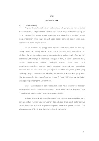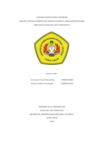Imanzaghi, Thomas Andrew and Suwandana, Eriyansyah Yusuf (2022) Analisis Aplikasi Administrasi Kependudukan di Dinas Kependudukan dan Pencatatan Sipil Kota Mojokerto. Project Report (Praktek Kerja Lapang dan Magang). UPN Veteran Jawa Timur. (Unpublished)