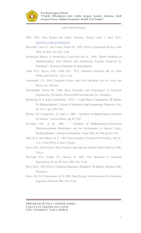 ZAMZAMI, M. RIFQY (2025) PRA RANCANGAN PABRIK DIFENILAMIN DARI ANILIN DENGAN KATALIS ALUMINA AKTIF DENGAN PROSES ALKILASI DENGAN KAPASITAS 40.000 TON/TAHUN. Undergraduate thesis, UNIVERSITAS PEMBANGUNAN NASIONAL "VETERAN" JAWA TIMUR.