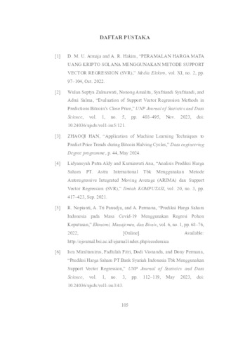 Herwanto, Moch Novandre Rega (2025) IMPLEMENTASI SUPPORT VECTOR REGRESSION (SVR) UNTUK PREDIKSI HARGA BITCOIN PASCA HALVING DENGAN ALGORITMA OPTIMASI GRID SEARCH. Undergraduate thesis, Universitas Pembangunan Nasional "Veteran" Jawa Timur.