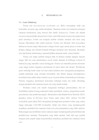 Yunitasari, Yunitasari (2025) Pengaruh Konsentrasi dan Frekuensi Pemberian Pupuk Organik Cair terhadap Pertumbuhan dan Hasil Tanaman Tomat Ceri (Lycopersicum esculentum var. Ruby). Undergraduate thesis, UPN Veteran Jawa Timur.