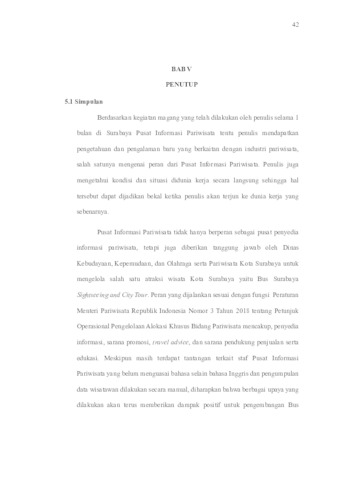 Nasri, Tinaiya Naila (2025) PERAN PUSAT INFORMASI PARIWISATA DALAM MEMFASILITASI ATRAKSI WISATA PADA BUS SURABAYA SIGHTSEEING AND CITY TOUR. Project Report (Praktek Kerja Lapang dan Magang). UNIVERSITAS PEMBANGUNAN NASIONAL "VETERAN" JAWA TIMUR. (Unpublished)