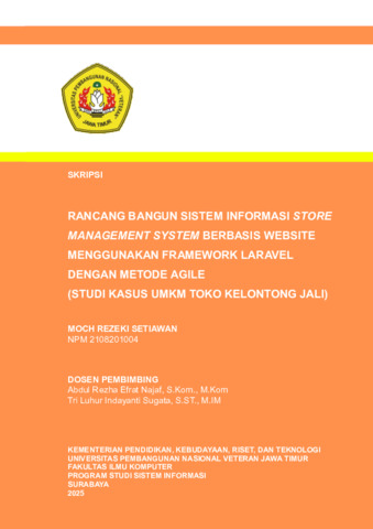 Setiawan, Moch Rezeki (2025) RANCANG BANGUN SISTEM INFORMASI STORE MANAGEMENT SYSTEM BERBASIS WEBSITE MENGGUNAKAN FRAMEWORK LARAVEL DENGAN METODE AGILE (STUDI KASUS UMKM TOKO KELONTONG JALI). Undergraduate thesis, UPN Veteran Jawa Timur.