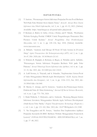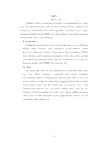 This study aims to design and build a website-based information system with the Laravel Framework and the Agile method at Toko Kelontong Jali, an MSME engaged in retail. The current business process is still done manually, which results in inefficiency and is prone to errors. This system is able to automate and integrate stock processing, transaction recording, and real-time sales data analysis. The Agile method is used to facilitate the development of a system that is adaptive and responsive to changing user needs. This thesis also includes testing stages using the Blackbox Testing method to ensure all features function according to specifications. The test results show that the developed system has succeeded in increasing operational efficiency and facilitating transaction processing and stock of goods.