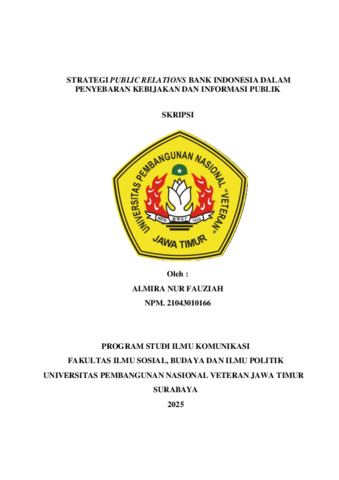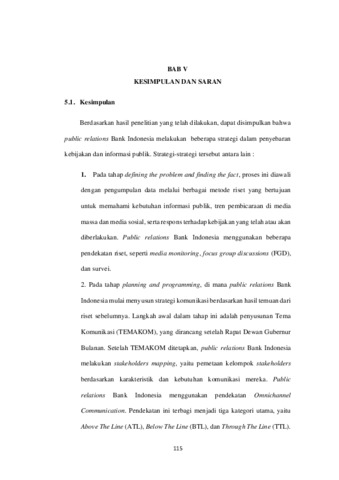 STRATEGI PUBLIC RELATIONS BANK INDONESIA DALAM PENYEBARAN KEBIJAKAN DAN INFORMASI PUBLIK