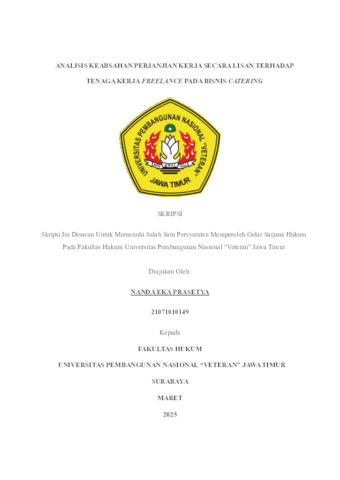 Prasetya, Nanda Eka (2025) Analisis Keabsahan Perjanjian Kerja Secara Lisan Terhadap Tenaga Kerja Freelance Pada Bisnis Catering. Undergraduate thesis, UPN Veteran Jawa Timur.