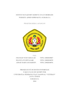 Fadlilah, Imamah Nur and Puspitasari, Dianita and Barmin, Aidah Maryam (2025) Sistem MAnajemen Kebencanaan Berbasis Website Admin BPBD Kota Surabay. Project Report (Praktek Kerja Lapang dan Magang). UPN Veteran Jawa Timur. (Unpublished)