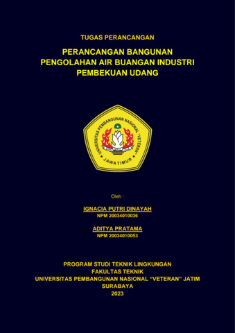 Dinayah, Ignacia Putri and Pratama, Aditya (2024) Perancangan Bangunan Pengolahan Air Buangan Industri Pembekuan Udang. Undergraduate thesis, UPN Veteran Jawa Timur.