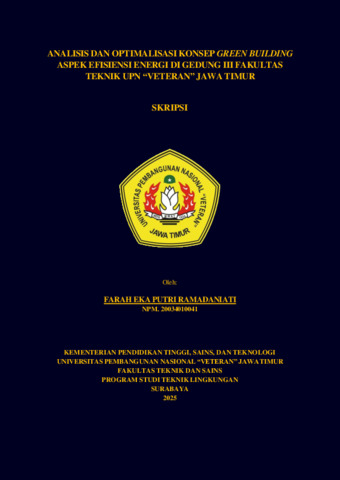 RAMADANIATI, FARAH EKA PUTRI (2025) Analisis dan Optimalisasi Konsep Green Building Aspek Efisiensi Energi di Gedung III Fakultas Teknik UPN "Veteran" Jawa Timur. Undergraduate thesis, UPN "Veteran" Jawa Timur.