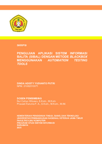 Putri, Dinda Adisty Yudianto (2025) PENGUJIAN APLIKASI SISTEM INFORMASI BALITA (SIBAL) DENGAN METODE BLACKBOX MENGGUNAKAN AUTOMATION TESTING TOOLS. Undergraduate thesis, UPN Veteran Jawa Timur.