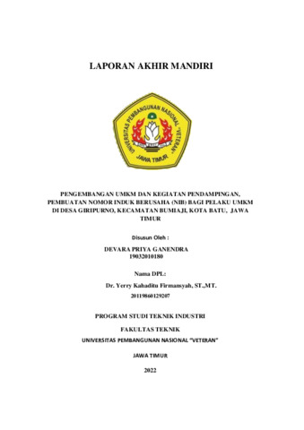 Ganendra, Devara Priya (2022) PENGEMBANGAN UMKM DAN KEGIATAN PENDAMPINGAN, PEMBUATAN NOMOR INDUK BERUSAHA (NIB) BAGI PELAKU UMKM DI DESA GIRIPURNO, KECAMATAN BUMIAJI, KOTA BATU, JAWA TIMUR. Project Report (Praktek Kerja Lapang dan Magang). UPN.