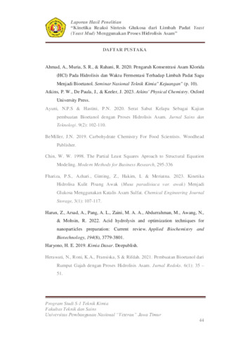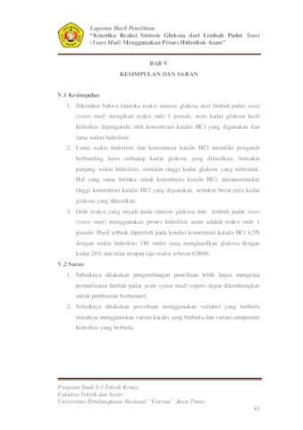 Dimas Nur, Arifianto (2025) KINETIKA REAKSI SINTESIS GLUKOSA DARI LIMBAH PADAT YEAST (YEAST MUD) MENGGUNAKAN PROSES HIDROLISIS ASAM. Undergraduate thesis, UNIVERSITAS PEMBANGUNAN NASIONAL "VETERAN" JAWA TIMUR.