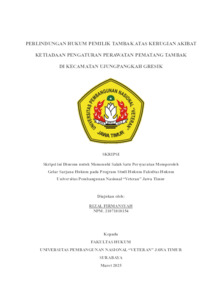 Firmansyah, Rizal (2025) Perlindungan Hukum Pemilik Tambak Atas Kerugian Akibat Ketiadaan Pengaturan Perawatan Pematang Tambak Di Kecamatan Ujungpangkah Gresik. Undergraduate thesis, UPN Veteran Jawa Timur.