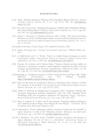 Perkembangan pesat kecerdasan buatan (AI) telah mendorong penerapannya di berbagai sektor, termasuk dalam dunia pendidikan. Chatbot berbasis AI kini semakin umum digunakan sebagai alat bantu pembelajaran, namun tingkat adopsinya di kalangan mahasiswa masih perlu dievaluasi. Penelitian ini bertujuan untuk mengkaji berbagai faktor yang memengaruhi penerimaan dan penggunaan AI Chatbot di lingkungan perguruan tinggi, dengan menempatkan kepercayaan (trust) sebagai faktor utama. Pengetahuan tentang Kecerdasan Buatan Chatbot, persepsi mengenai keramahan pengguna, penilaian fungsionalitas, evaluasi kemampuan kognitif, pertimbangan keandalan, dan niat untuk merangkul Chatbot AI merupakan beberapa komponen yang telah diintegrasikan ke dalam Model Penerimaan Teknologi (TAM), yang telah mengalami modifikasi untuk aplikasi dalam penyelidikan saat ini. Sebanyak 570 mahasiswa yang terdaftar di Universitas Pembangunan Nasional “Veteran” Jawa Timur diberikan kuesioner sebagai bagian dari metodologi pengumpulan data kuantitatif. Selain itu, teknik PLS-SEM kemudian digunakan untuk melakukan analisis data yang dikumpulkan. Dengan persepsi kegunaan, kemudahan penggunaan, dan kecerdasan yang dipersepsikan sebagai variabel mediasi, temuan studi menunjukkan bahwa Kesadaran AI Chatbot berpengaruh positif terhadap niat adopsi AI Chatbot. Selain itu, hubungan antara Kesadaran AI Chatbot dan Kegunaan yang Dipersepsikan, Kemudahan Penggunaan yang Dipersepsikan, dan Kecerdasan yang Dipersepsikan diperkuat oleh Kepercayaan yang Dipersepsikan, yang bertindak sebagai variabel moderasi. Kata kunci: Kecerdasan Buatan, AI Chatbot, Technology Acceptance Model, Trust