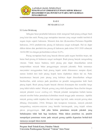 Kurniawati, Ita (2022) Pemanfaatan Limbah Kulit Pisang Kepok Sebagai Bioadsorben Pada Penurunan Warna Minyak Bekas Penggorengan. Undergraduate thesis, UPN Veteran Jawa Timur.