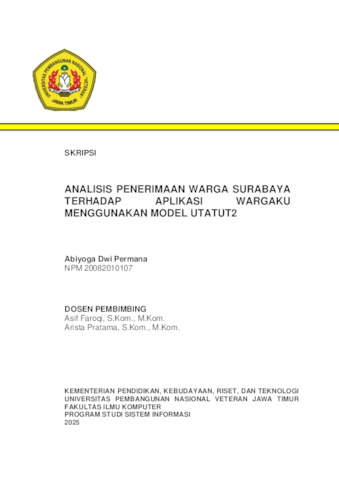 Permana, Abiyoga Dwi (2025) Analisis Penerimaan Warga Surabaya Terhadap Aplikasi WargaKu Menggunakan Model UTAUT2. Undergraduate thesis, UPN Veteran Jawa Timur.