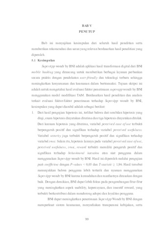 SuperApp wondr by BNI is a new digital banking application as a result of the transformation of BNI mobile banking that integrates various financial and non financial services in one platform to provide a more practical, efficient, and personal digital banking experience. The transition from BNI mobile to wondr by BNI as a new technology faces challenges in user adoption. Several challenges in implementing technology, such as system adjustments, feature optimization, and increasing service stability, can affect user experience and consumer trust levels. This thesis aims to trigger the acceptance factor of Whatsapp wonder by BNI using the modified TAM model. The analysis was carried out using the Partial Least Square-Structural Equation Model (PLS-SEM) technique using the assistance of SmartPLS 4 software. This thesis involved 384 respondents, which were determined based on the Lameshow formula calculation with a purposive sampling technique. The results of this thesis show that the factors of acceptance of the Wondr application by BNI are perceived ease of use, perceived benefits, trust, and rewards which are proven to be significant based on path coefficient testing with P-values < 0.05 and T-statistics ≥ 1.96. These results indicate that ease of use, perceived benefits, trust, and incentives provided play an important role in encouraging the adoption of Whatsapp Wondr by BNI. Keywords: SuperApp, Wondr by BNI, Mobile Banking, TAM, SEM-PLS
