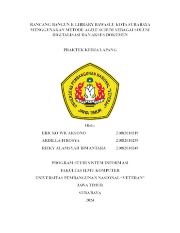 Firosya, Ardilla and Bimantara, Rizky Alamsyah and Wicaksono, Ericko (2025) Rancang Bangun E-Library BAWASLU Kota Surabaya Menggunakan Metode Agile Scrum Sebagai Solusi Digitalisasi Dan Akses Dokumen. Project Report (Praktek Kerja Lapang dan Magang). UPN Veteran Jawa Timur.