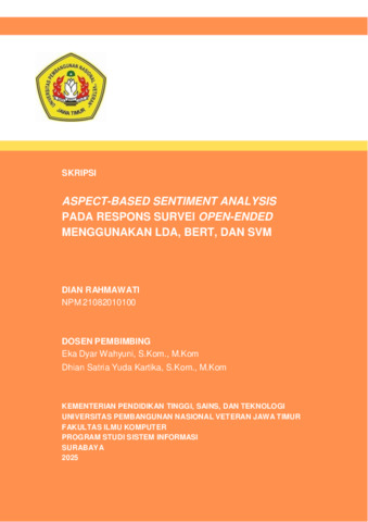 Rahmawati, Dian (2025) ASPECT-BASED SENTIMENT ANALYSIS PADA RESPONS SURVEI OPEN-ENDED MENGGUNAKAN LDA, BERT, DAN SVM. Undergraduate thesis, Universitas Pembangunan Nasional Veteran Jawa Timur.