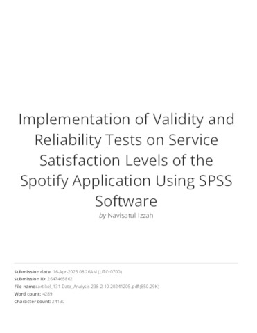 Implementation of Validity and Reliability Tests on Service Satisfaction Levels of the Spotify Application Using SPSS Software.pdf Download (2MB) | Preview |
