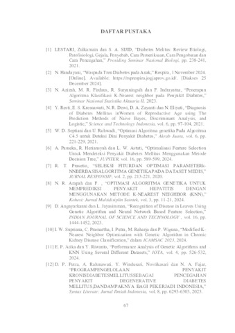 Darmawan, Marcellinus Aditya Vitro (2025) OPTIMASI ALGORITMA K-NEAREST NEIGHBOR (KNN) DENGAN ALGORITMA GENETIKA PADA DETEKSI PENYAKIT DIABETES MELLITUS. Undergraduate thesis, UPN Veteran Jawa Timur.