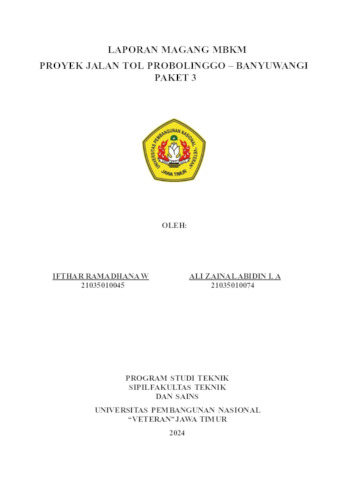AL HABSYI, ALI ZAINAL ABIDIN ISA and WAHYUDI, IFTHAR RAMADHANA (2025) PROYEK JALAN TOL PROBOLINGGO – BANYUWANGI PAKET 3. Project Report (Praktek Kerja Lapang dan Magang). Universitas Pembangunan Nasional Veteran Jawa Timur.