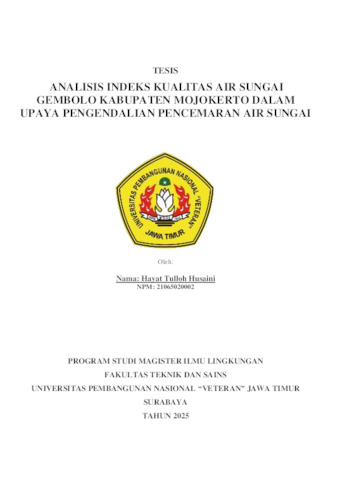 HUSAINI, HAYAT TULLOH (2025) ANALISIS INDEKS KUALITAS AIR SUNGAI GEMBOLO KABUPATEN MOJOKERTO DALAM UPAYA PENGENDALIAN PENCEMARAN AIR SUNGAI. Masters thesis, UNIVERSITAS PEMBANGUNAN NASIONAL “VETERAN” JAWA TIMUR.