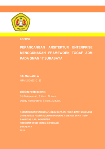 Nabila, Salma (2025) Perancangan Arsitektur Enterprise Menggunakan Framework TOGAF ADM Pada SMAN 17 Surabaya. Undergraduate thesis, UPN Veteran Jawa Timur.