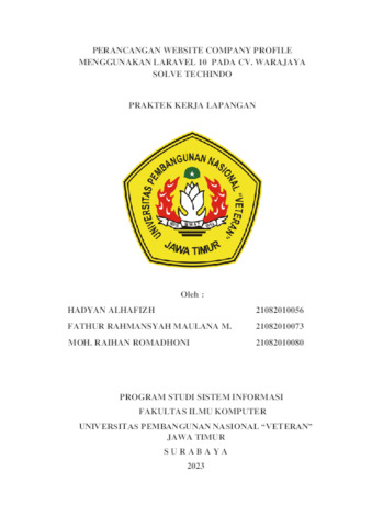 Alhafizh, Hadyan and Maulana M, Fathur Rahmansyah and Romadhoni, Moh Raihan (2023) Perancangan Website Company Profile Menggunakan Laravel 10 Pada Cv. Warajaya Solve Techindo. Project Report (Praktek Kerja Lapang dan Magang). UPN Veteran Jawa Timur. (Unpublished)