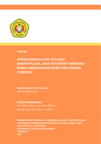 Hilaly, Salwa Ghaliyah (2025) Perancangan UI/UX Aplikasi Marketplace Jasa Fotografi Berbasis Mobile Menggunakan Metode Design Thinking. Undergraduate thesis, Universitas Pembangunan Negeri Veteran Jawa Timur.