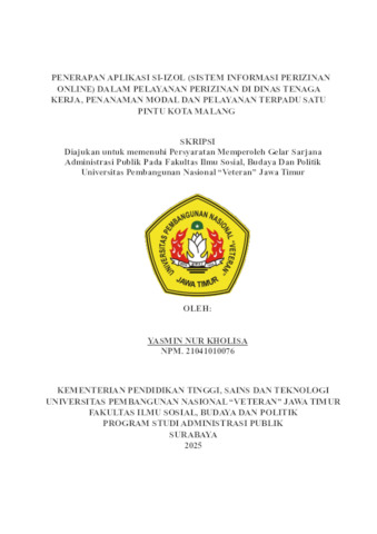 Kholisa, Yasmin Nur (2025) PENERAPAN APLIKASI SI-IZOL (SISTEM INFORMASI PERIZINAN ONLINE) DALAM PELAYANAN PERIZINAN DI DINAS TENAGA KERJA, PENANAMAN MODAL DAN PELAYANAN TERPADU SATU PINTU KOTA MALANG. Undergraduate thesis, UPN “Veteran” Jawa Timur.
