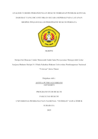 Agussriani, Astiya Putri (2025) Analisis Yuridis Perlindungan Hukum Terhadap Pemilik Kontak Darurat Yang Dicantumkan Secara Sepihak Pada Layanan Shopee Pinjam Dalam Perspektif Hukum Perdata. Undergraduate thesis, UPN Veteran Jawa Timur.